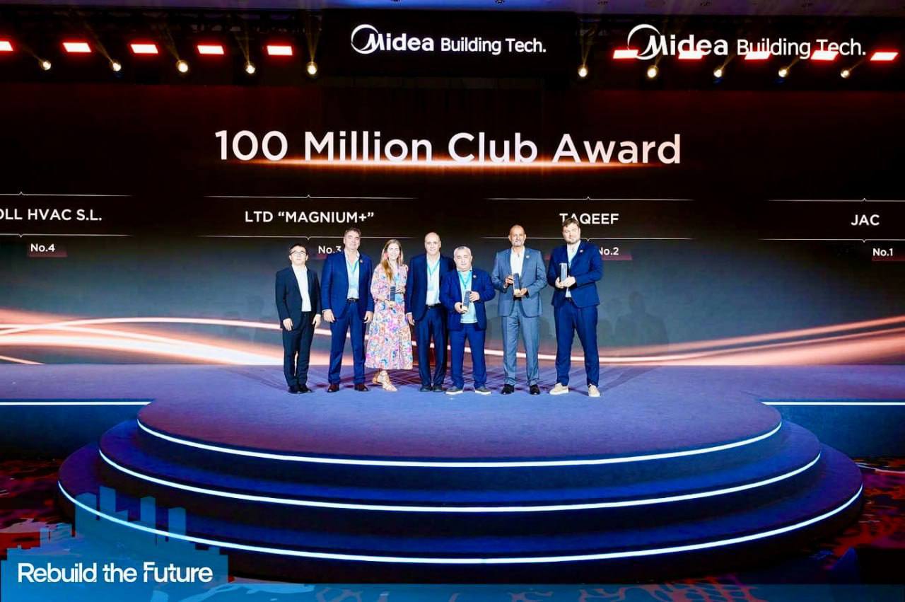 • Премия Best VRF Sales Contributor Award: мы — абсолютные лидеры по продажам VRF-систем среди дистрибьюторов оригинальных ТМ Midea Building Technoligies! Это подтверждение нашего успеха в ключевом сегменте.